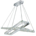 This Clover chrome LED double rectangle frame pendant with clear crystal trim looks absolutely stunning on the ceiling of any living space. The two chrome finish intertwining rectangles are adorned with crystal squares and they are fully adjustable so they can be positioned at different angles for distinctive lighting effects, adding a large touch of modern glamour to any room. LED's use up to 75% less energy and last up to 20 times longer than incandescent bulbs.