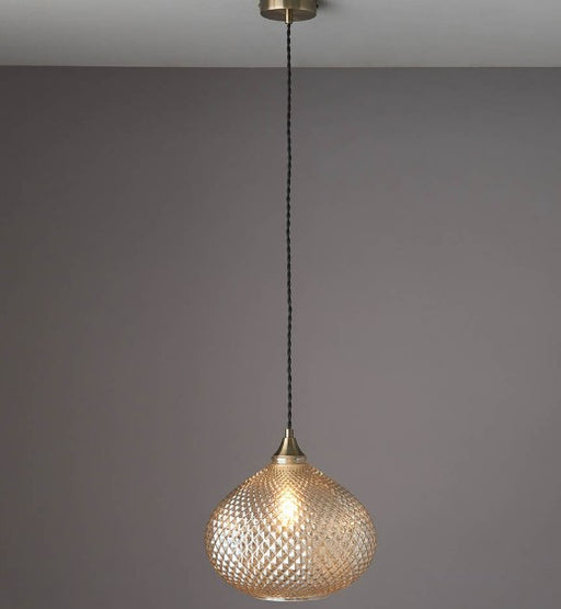 Endon LightingIn stockHighly decorative aged brass effect plated pendant with opal glass. Suspended from height adjustable clear flex. Perfect for use with LED lamps to ...