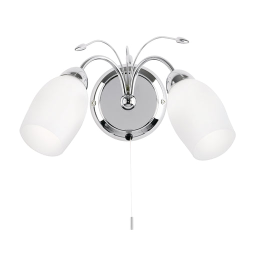 Endon LightingIn stockTwin wall light with down-facing opal glass shades, and finished in chrome effect plate. Supplied with pull cord switch. Dimmable and suitable for ...