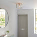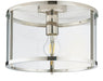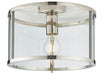 Simple yet stunning flush light in bright nickel plate and clear glass. Dimmable to create the perfect ambience making the perfect addition to hallway or low ceiling room.