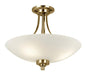 The Welles semi flush light has an antique brass finish complete with a white painted glass shade which has a faint line pattern. Other finishes and matching items are also available, all of which are suitable for use with LED lamps and are dimmable.