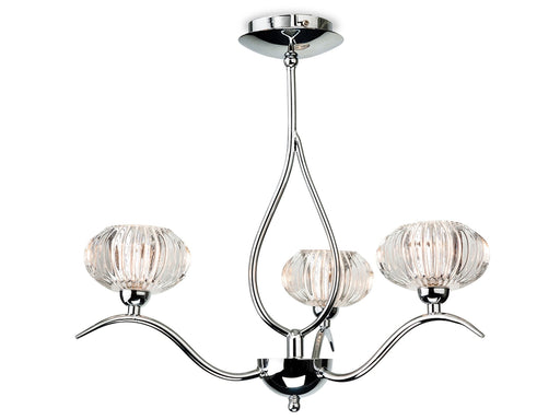 Modern style bathroom 3 light ceiling fittings featuring ribbed glass. It has an IP44 splashproof rating. Colour: Chrome with Clear Ribbed Glass ...