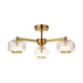 This 3 light semi flush ceiling light showcases a refined mid-century aesthetic with its trio of delicately ribbed glass shades. Each shade casts a soft, diffused glow, beautifully complemented by the brushed aged brass metal finish for a look that exudes warmth and elegance. Perfect for lower ceilings or compact spaces, it offers a stylish timeless solution.