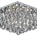 This Hanna chrome 6 light square ceiling fitting with clear crystal pyramid drops looks striking on any ceiling in your home. The luxurious light fits flush to the ceiling and features six lamps surrounded by decadent crystal trimming and pyramid drops. And the elegant square mirrored backplate completes the look of this contemporary chandelier.
