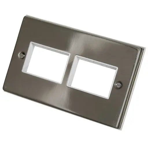 Click VPSC406WH Deco 2 Gang 3 + 3 Module Front Plate White Insert Satin Chrome