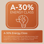 Built to last with a certified 25-year inverter motor and an energy rating of A-30%, the Hotpoint Fabric Care washing machine gives you efficient, reliable cleaning that’s kind to your clothes and the environment.