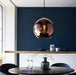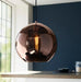 Effortlessly cool copper mirrored glass shade hangs from matt black metalwork in this dimmable pendant perfect for creating a modern contemporary feel. Matching items also available.