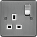 The Hager WRSS81BSW is a Brushed Steel, 1 Gang, 13A Switched socket. It comes with white inserts. The plate style is a raised plate making it attractive but subtle. It comes with M3.5x30mm screws for fixing.