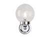 Contemporary bathroom wall light that is ideal for use either side of a mirror. Modern chrome finish with a clear glass globe. IP44 rated.