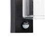 A neat and compact modern wall light with a built in PIR ideal for doorway areas. Clear glass shade and die cast aluminium metalwork.