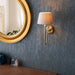 A new take on a timeless classic, elegant and on trend antique brass plate wall fitting, adorn with ivory 8 inch tapered fabric shade.