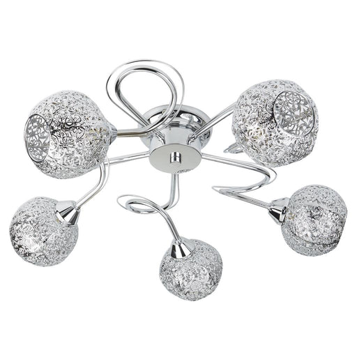 SearchlightOut of stockThis Souk ceiling flush includes 5 lights and beautiful chrome fretwork pattern shades attached to stylish curved arms. From the shades, a stunning...