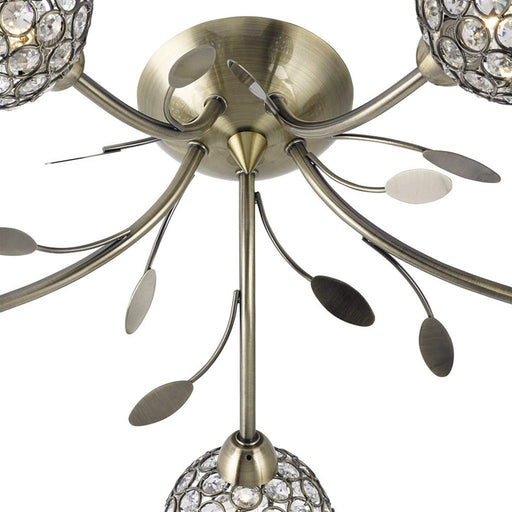 SearchlightOut of stockThis Bellis II antique brass 5 light semi-flush ceiling light with clear glass shades and leaf decoration looks beautiful on any bedroom, living ro...