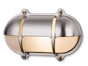 Traditional nickel plated solid brass ship style bulkhead with frosted glass. Attractive and practical and suitable for both indoor and outdoor use.