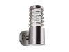 Attractive modern LED stainless steel outdoor wall light featuring a frosted polycarbonate diffuser housed within a louvered effect.