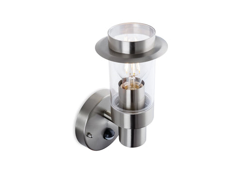 FirstlightIn stockAttractive modern stainless steel outdoor wall light featuring a clear polycarbonate diffuser. PIR detection angle 120 degrees, range 8 metres, dur...