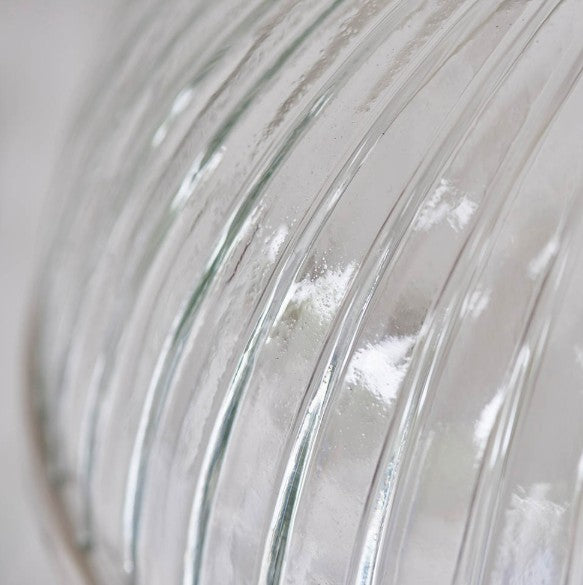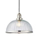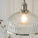 An authentic 'resto' style industrial pendant, finished in bright nickel plating with authentic knurled lamp holder details and vintage style clear ribbed glass shades . Suspended from height adjustable black fabric flex, pair with filament LED lamps for that perfect industrial style. The perfect addition for today's stylish homes to create that on trend bar, bistro look.