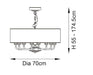 - Height adjustable 1.5 metre brushed chrome chain and clear flex