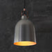 The strong silhouette shape of this E27 pendant is a nod to industrial design style. Finished in aged pewter with contrasting aged copper plated details. This pendant is ideal when placed in a modern open plan kitchen and dining space, individually or in multiples, for creating an on-trend contemporary modern living look.
