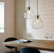 The Utopia is a high quality clear blown glass pendant, impressive in size with a unique 'melted' form, perfect for use with filament LED lamps. Finished in chrome plated metalwork with cool grey height adjustable fabric flex.