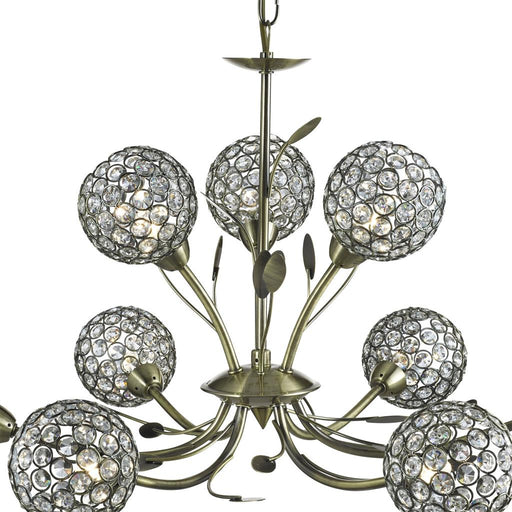 SearchlightIn stockThis Bellis II antique brass 9 light pendant with clear glass shades and leaf decoration makes an imposing centrepiece for any bedroom, living room...
