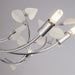 Bring the outdoors inside with our Wisteria contemporary 10 light semi-flush ceiling light with unusual coloured glass leaves. The delicate white glass leaves, beautifully positioned at the tip of chrome stems branching out from the spherical centre piece will add a lovely, attractive floral feel to any living space.