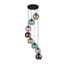 The Mardi Gras II 8Lt Multi-Drop Pendant combines timeless elegance with a vibrant burst of colour. Crafted with precision from mild steel and glass, this pendant displays the perfect blend of durability and style. It features a striking design with globe/sphere-shaped shades in blue, yellow, pink, and smoked colours. These shades bring a lively and dynamic element to the pendant, creating a captivating focal point in any room. The variety of colours adds depth and visual interest, enhancing the overall aesthetic appeal of the pendant and the space it illuminates. The glazed finish adds a touch of allure to the pendant, creating a glossy and reflective surface that enhances the overall brightness. The spherical shades not only provide comprehensive illumination but also serve as a focal point and statement piece, drawing attention and becoming a conversation piece in any home. Height adjustable, this multi-drop pendant will work for both hallways and living spaces alike.