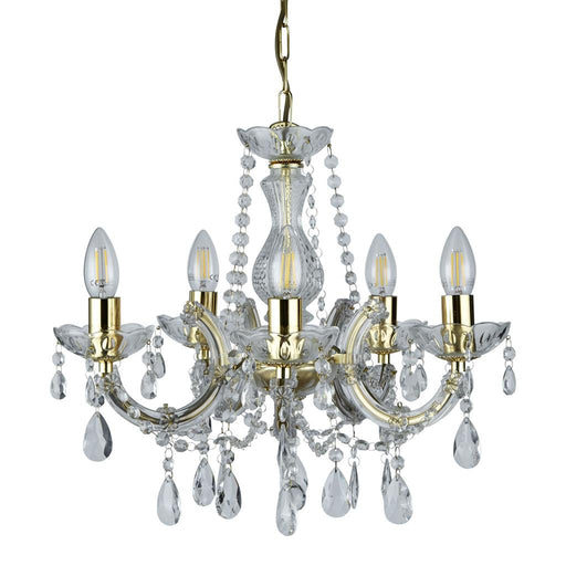 SearchlightIn stockThe spectacular, glittering Marie Therese 5 light chandelier with a polished brass frame has an aristocratic style, perfect for adding a theatrical...
