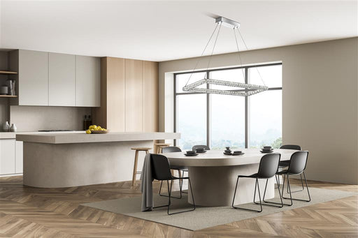 SearchlightIn stockThis Clover chrome LED double rectangle frame pendant with clear crystal trim looks absolutely stunning on the ceiling of any living space. The two...