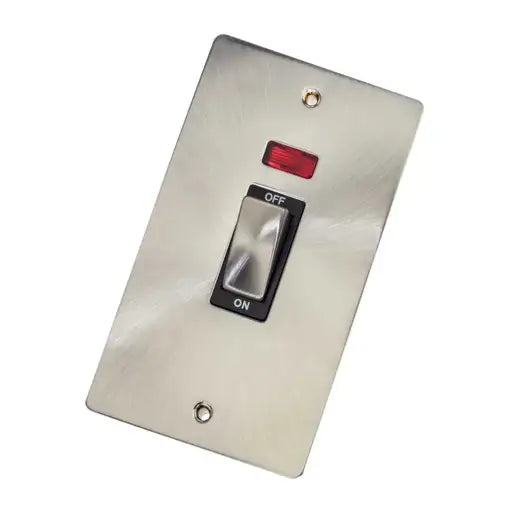 Click FPBS503BK Define 45A DP 2 Gang Vertical Switch with Neon Black Insert Brushed Steel