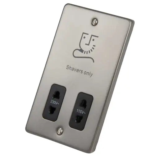 Click VPSC100BK Click Deco Dual Voltage Shaver Socket Black Insert Satin Chrome