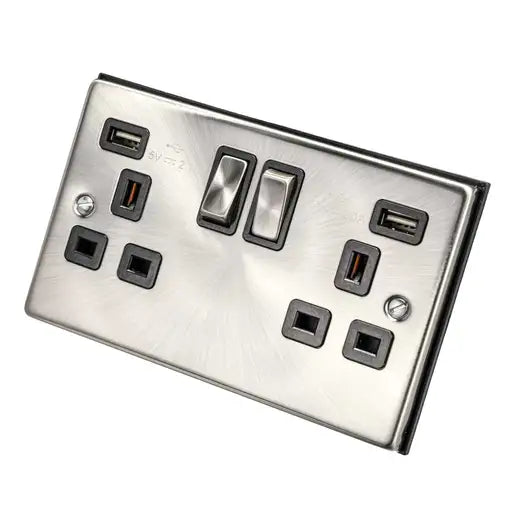 Saxby SE423 Square Edge 13A 2G DP Switched Socket with twin 5V USB