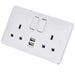 Hager WMSS82USB Sollysta 13A DP 2 Gang Switched Socket with Twin USB Outlets White