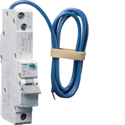 Hager ADB406U RCBO SP B 6A 30mA 10kA