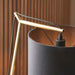 This cantilevered table light is inspired by architectural forms and brings instant contemporary style and a refined aesthetic. The black cotton shade is suspended from a choice of matt brass or matt nickel metalwork with a matt black base adding modern design symmetry. Combine with matching items in the range for a cohesive look.