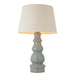 Ceramic table lamp finished in luxurious gloss blue grey glaze complimented with a ivory linen tapered shade.