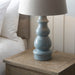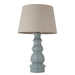 Ceramic table lamp finished in luxurious gloss blue grey glaze complimented with a grey linen tapered shade.