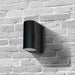 This black Eiffel outdoor wall light is simple and stylish. The fitting has a rounded edge and features two lamps with fixed glass lenses on the top and bottom, which provide dual uplight and downlight. And it is IP44 rated and fully splashproof, so it is ideal for lighting any of your outdoor areas.