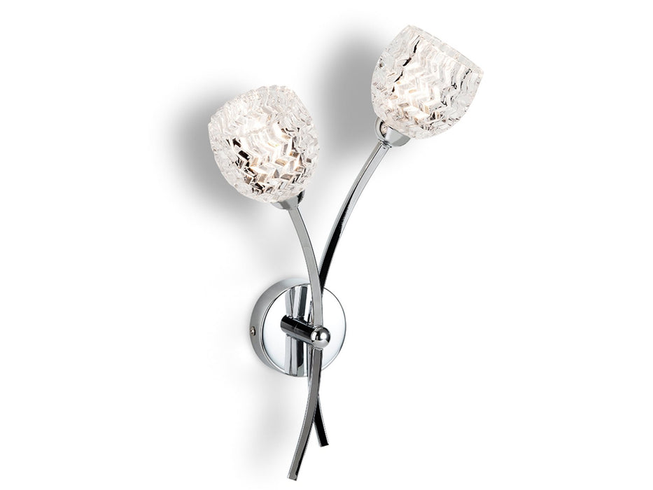 An attractive contemporary wall light featuring chrome metalwork and a beautiful clear prismatic glass. Ideal for use with LED G9 lamps.