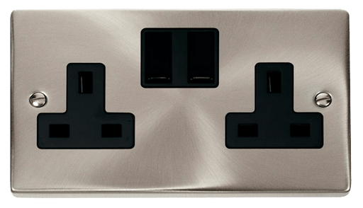 Click VPSC036BK Socket 2G Switched13A Satin Chrome with Black Inserts