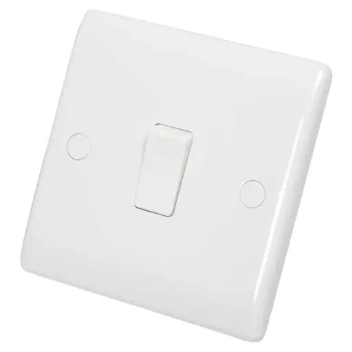 BGIn stock20A, 16AX inductive rated 1 gang, 1 way switch Captive screw terminals Minimum mounting box depth: 16mm 30 Year Guarantee Sleek Modern Profile Scr...