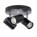 The Arezzo three light round spotlight is adjustable and compatible with GU10 LED lamps. Suitable for commercial or domestic use. Finished in matt black paint with chrome detail, matching items are available.