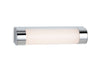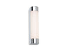 Sleek modern bathroom wall light suitable for use both horizontally above a mirror, or vertically beside. Finished in chrome with a opal white polycarbonate diffuser.