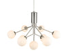 A beautiful contemporary 5 light pendant using classic lines and an opal white globe glass. A fitting centrepiece to any room.