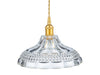 A stunning compact pendant which has beautiful clear decorative glass and is finished with satin gold metalwork and cable. Ideal for use as a single pendant or in a group or line with others.