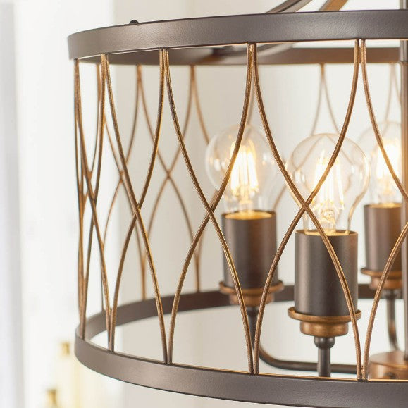 The Heston pendant has a matt black & rustic bronze effect finish, is suitable for use with LED lamps and is dimmable. Semi flush and wall fitting also available.