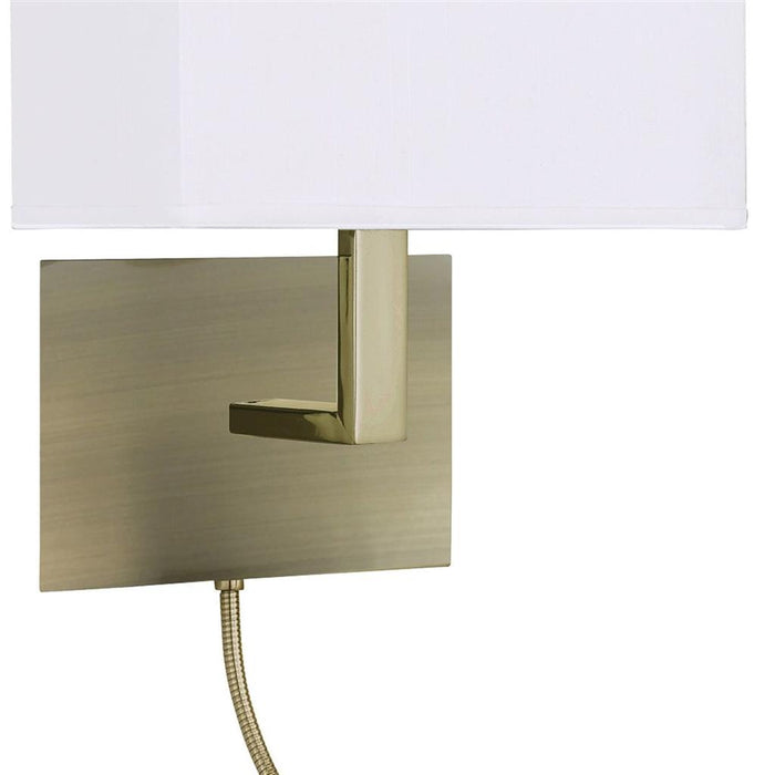 Searchlight 6519AB Hotel Wall Light- Antique Brass Metal & White Fabric