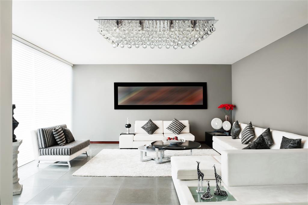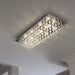 This Hanna chrome 8 light rectangular ceiling fitting with clear crystal pyramid drops looks magnificent on any ceiling. The luxurious light fits flush to the ceiling and features eight lamps surrounded by decadent crystal trimming and balls. And the elegant rectangular mirrored backplate completes the look of this large, modern chandelier.
