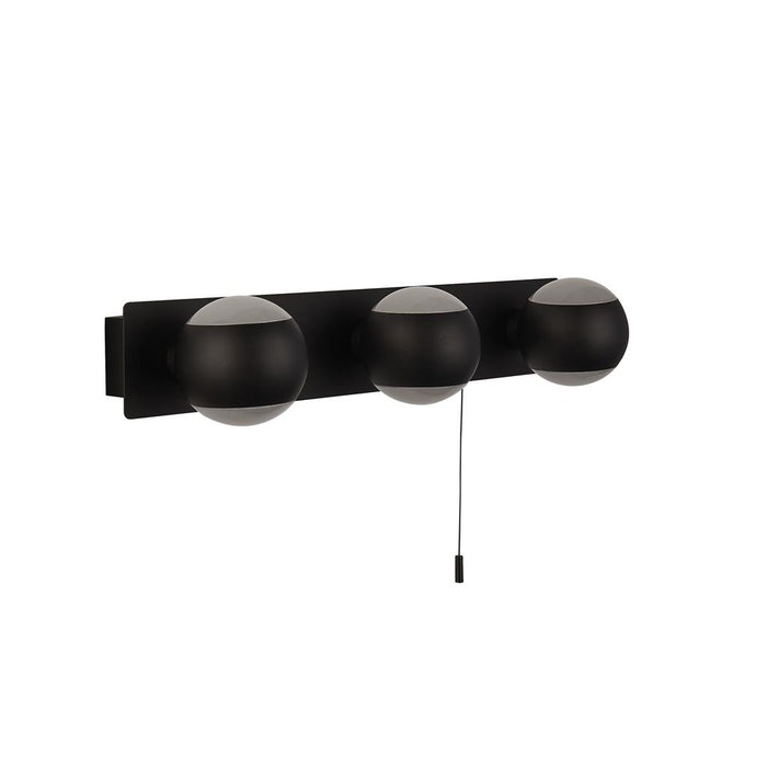 The Flare wall light will add contemporary style to any bathroom. The matt black fitting has a 3 ball shapes with opal diffusers at the top and bottom , and is operated using a simple pull cord. This item has a rating of IP44, meaning that it is fully splash proof and suitable for use in a bathroom setting. LED's use up to 75% less energy and last up to 20 times longer than incandescent bulbs.