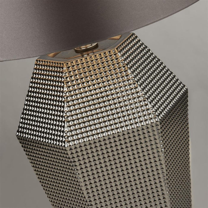 The smoked glass Lucy table lamp has a grey hexagonal style base and grey drum shade. The lamp would be ideal in a living room, bedroom or hallway in any type of home.